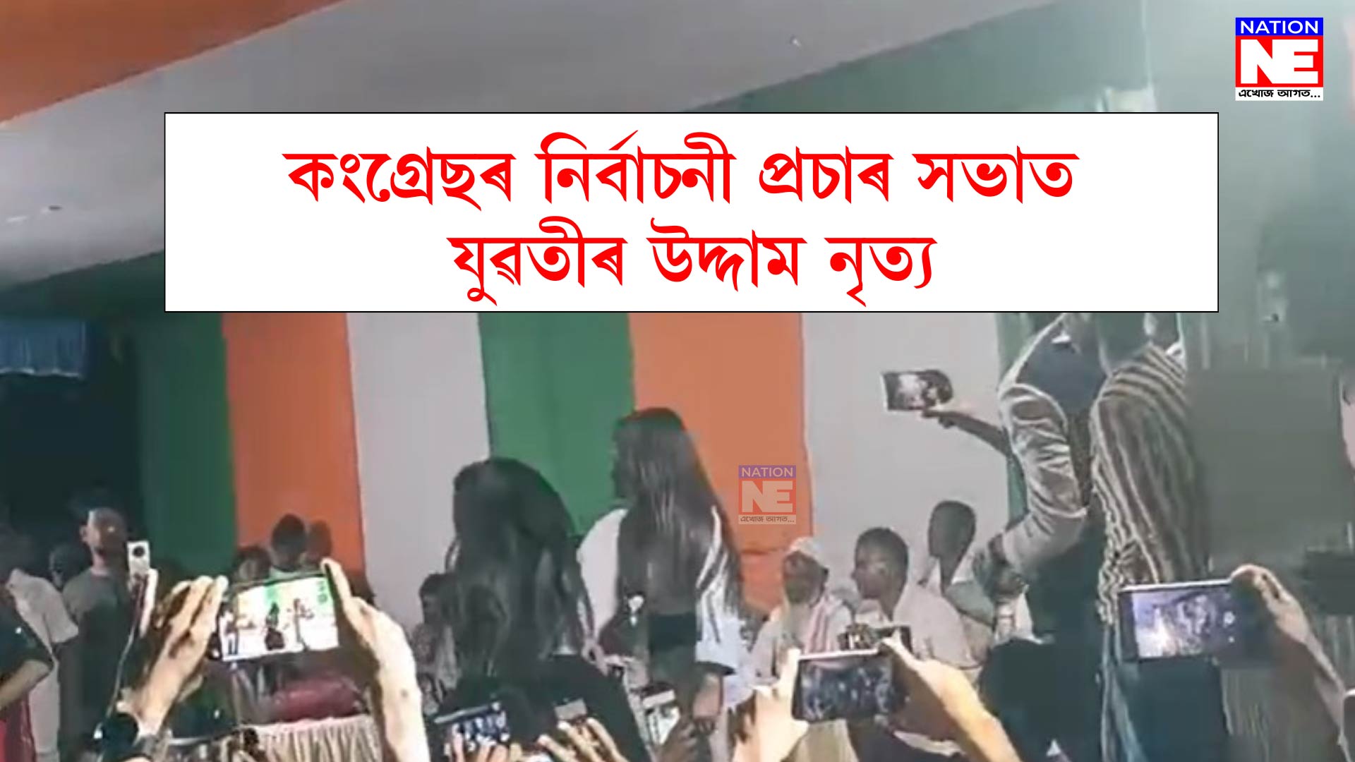 নিৰ্বাচনী প্ৰচাৰ সভাত কংগ্ৰেছৰ নিকৃষ্ট কাণ্ড। হিন্দী গীতৰ তালে তালে যুৱতীয়ে প্ৰদৰ্শন কৰিলে অশ্লীল নৃত্য।