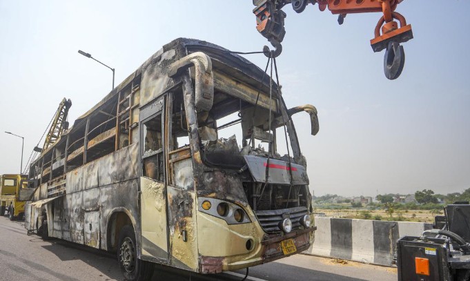 দিল্লীৰ পৰা উত্তৰ প্ৰদেশৰ গোণ্ডা অভিমুখে ৭০জন যাত্ৰী কঢ়িয়াই অনা এখন ডাবল ডেকাৰ বাছ লক্ষ্ণৌ-আগ্ৰা এক্সপ্ৰেছৱেত জুইত জাঁহ যায়। টায়াৰ ফাটি বাছখন জ্বলি উঠে, যাৰ ফলত বাছখন জুইৰ শিখাই আগুৰি ধৰে।