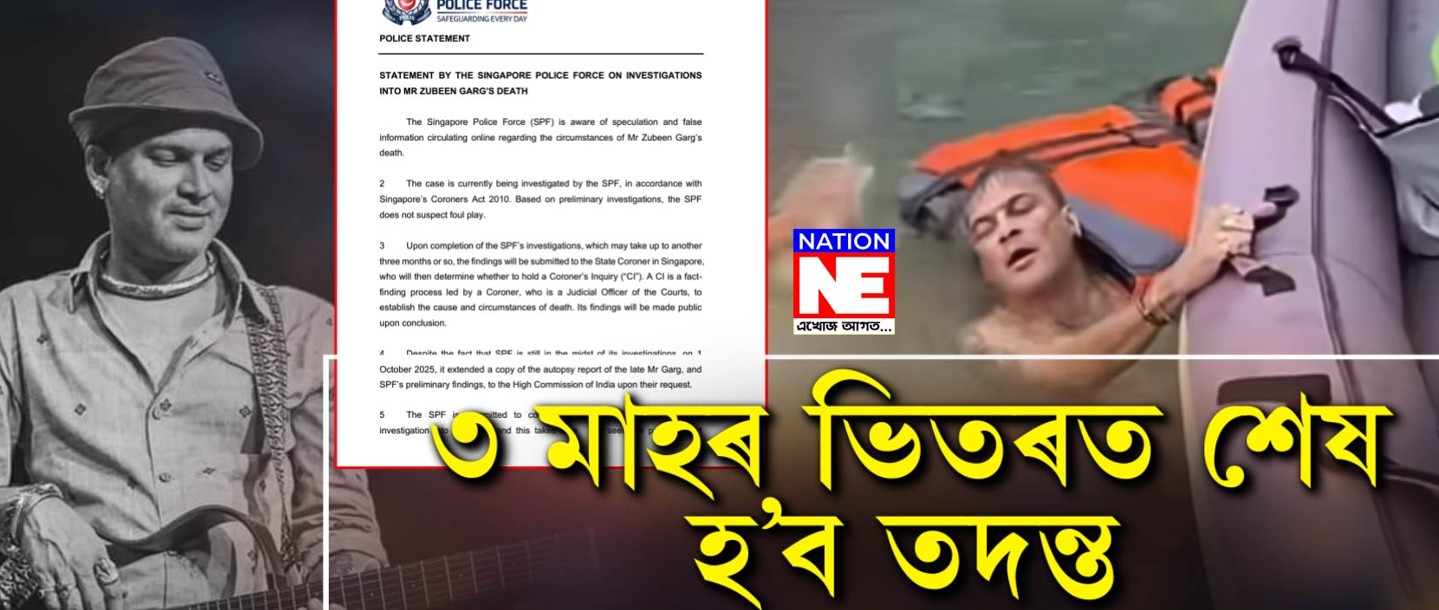 জুবিন গাৰ্গৰ মৃত্য সন্দৰ্ভত ছিংগাপুৰ আৰক্ষীৰ প্ৰতিক্ৰিয়া। ছিংগাপুৰ আৰক্ষীয়ে দিলে নতুন তথ্য। ছিংগাপুৰ আৰক্ষীয়ে জনাই যে জুবিন গাৰ্গৰ মৃত্যু অস্বাভাৱিক নহয়। প্ৰাৰম্ভিক তদন্তৰ পাছতেই বিবৃতিযোগে এই ঘোষণা কৰে ছিংগাপুৰ পুলিচ ফ’ৰ্চে।